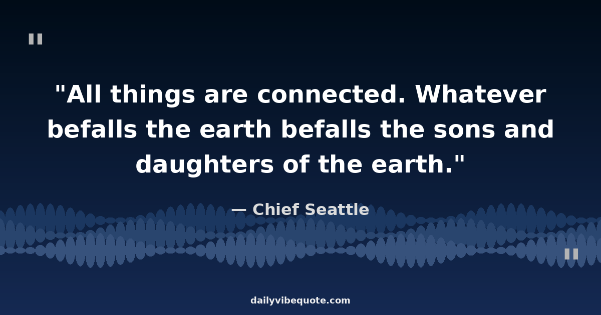 "All things are connected. Whatever befalls the earth befalls the sons and daughters of the earth."