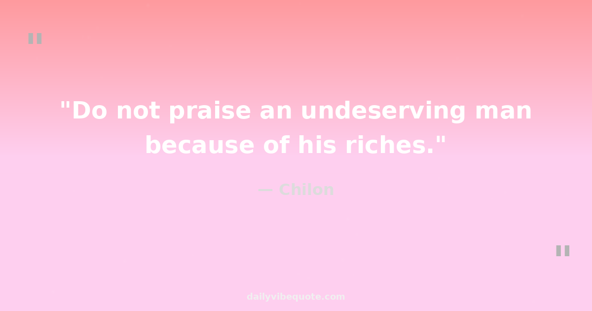 "Do not praise an undeserving man because of his riches."