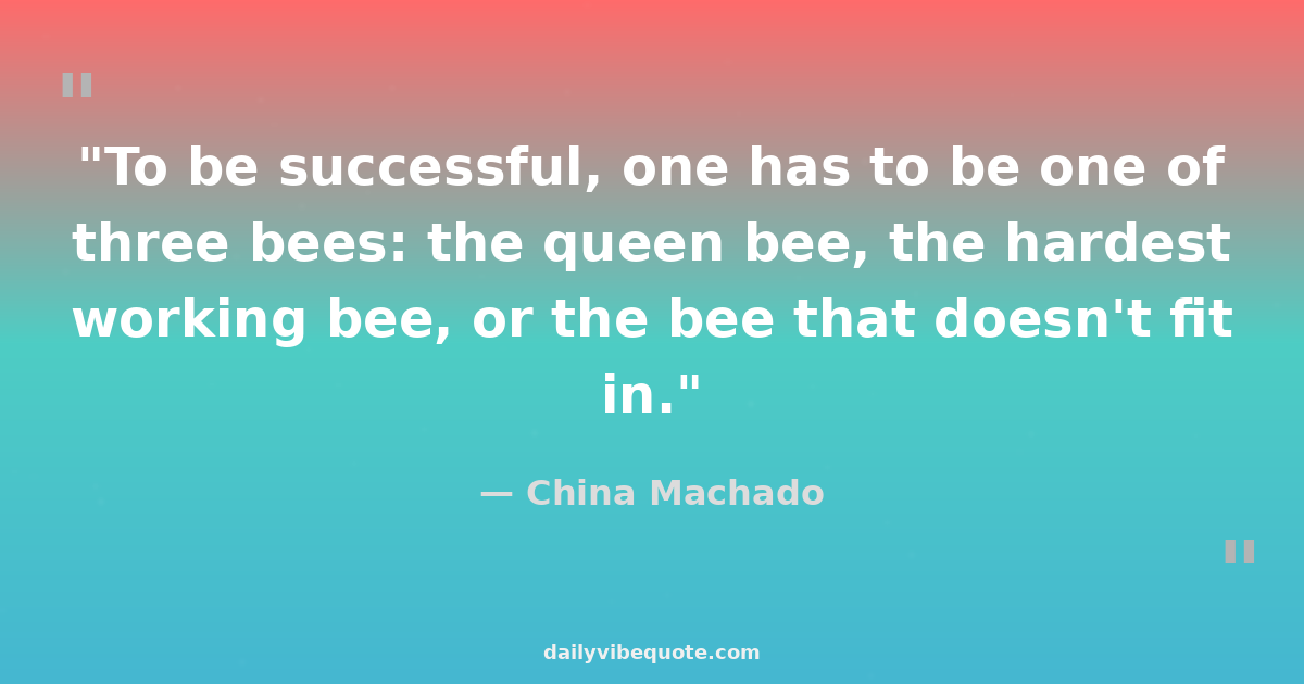 "To be successful, one has to be one of three bees: the queen bee, the hardest working bee, or the bee that doesn't fit in."