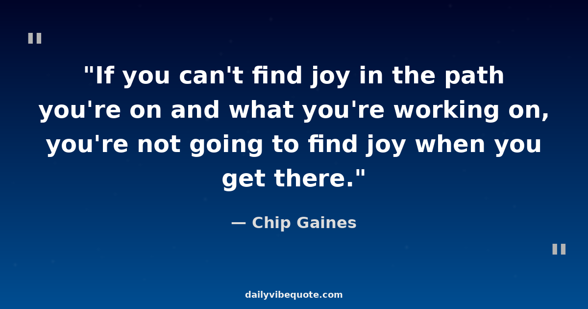 "If you can't find joy in the path you're on and what you're working on, you're not going to find joy when you get there."