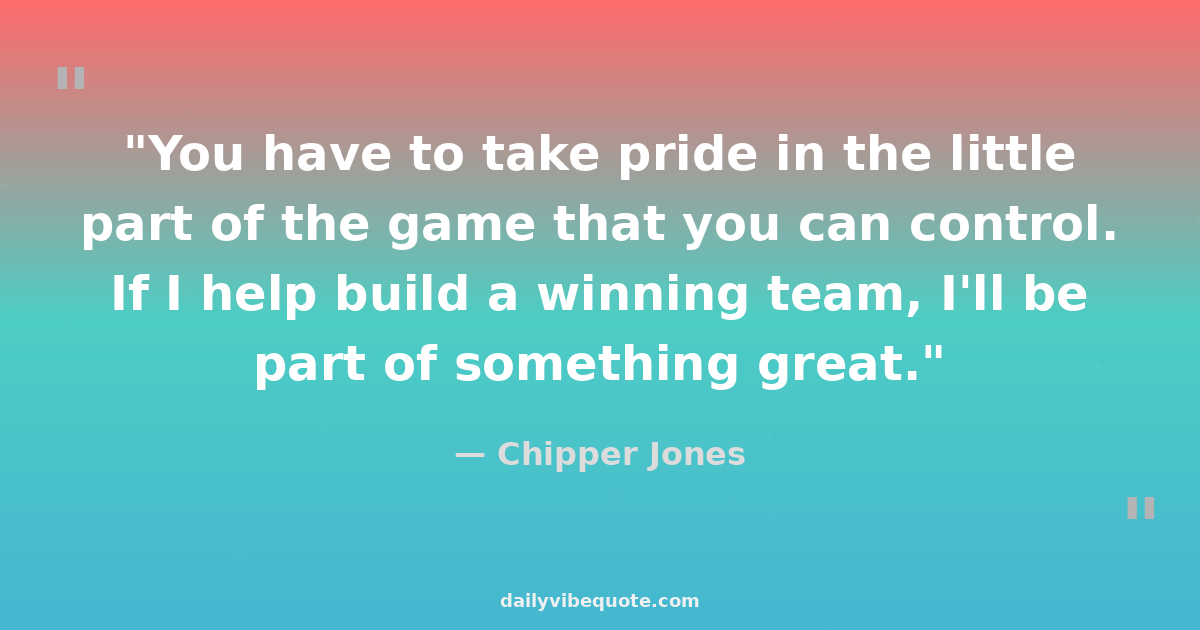 "You have to take pride in the little part of the game that you can control. If I help build a winning team, I'll be part of something great."