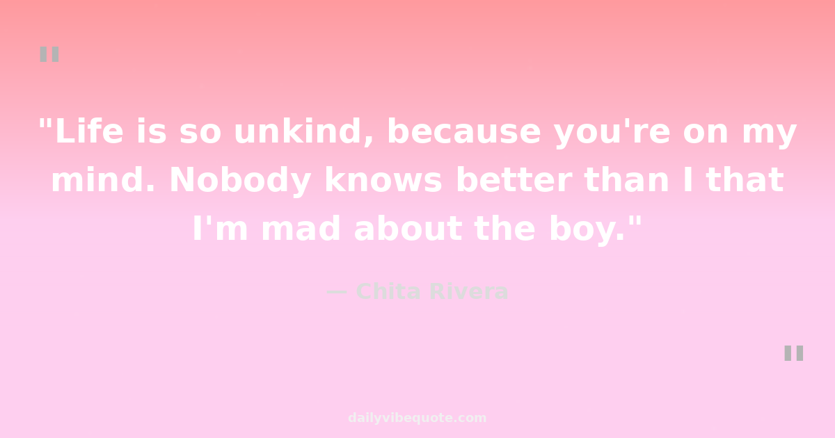 "Life is so unkind, because you're on my mind. Nobody knows better than I that I'm mad about the boy."