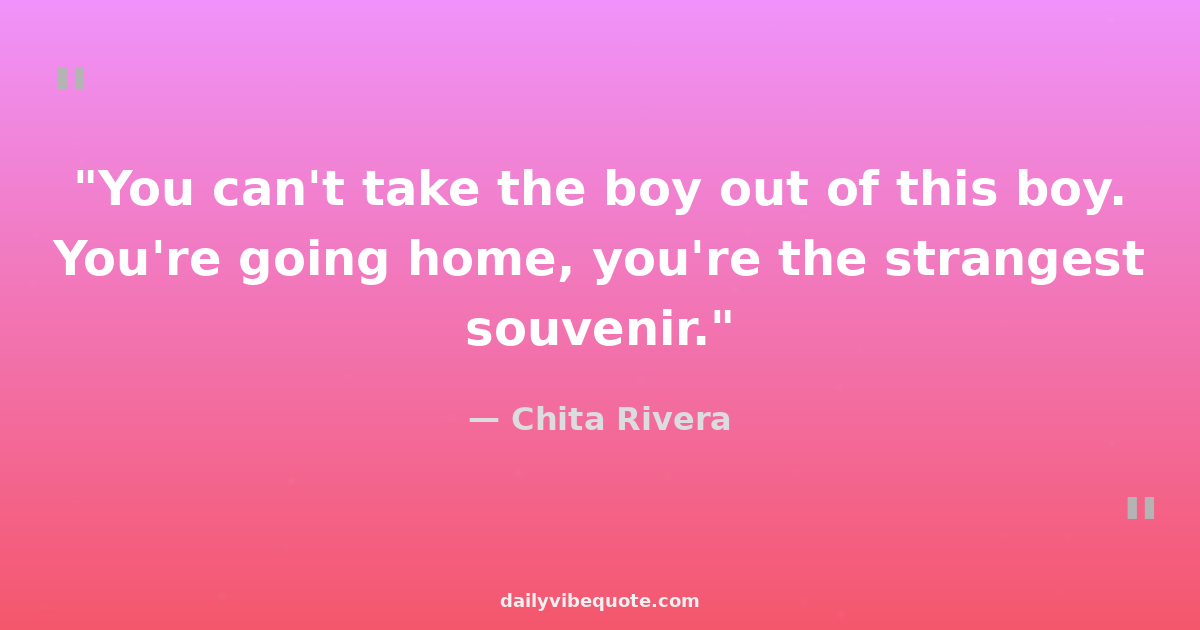 "You can't take the boy out of this boy. You're going home, you're the strangest souvenir."