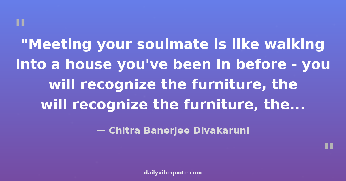 "Meeting your soulmate is like walking into a house you've been in before - you will recognize the furniture, the pictures on the wall, the books on the shelves, the smell of the house."