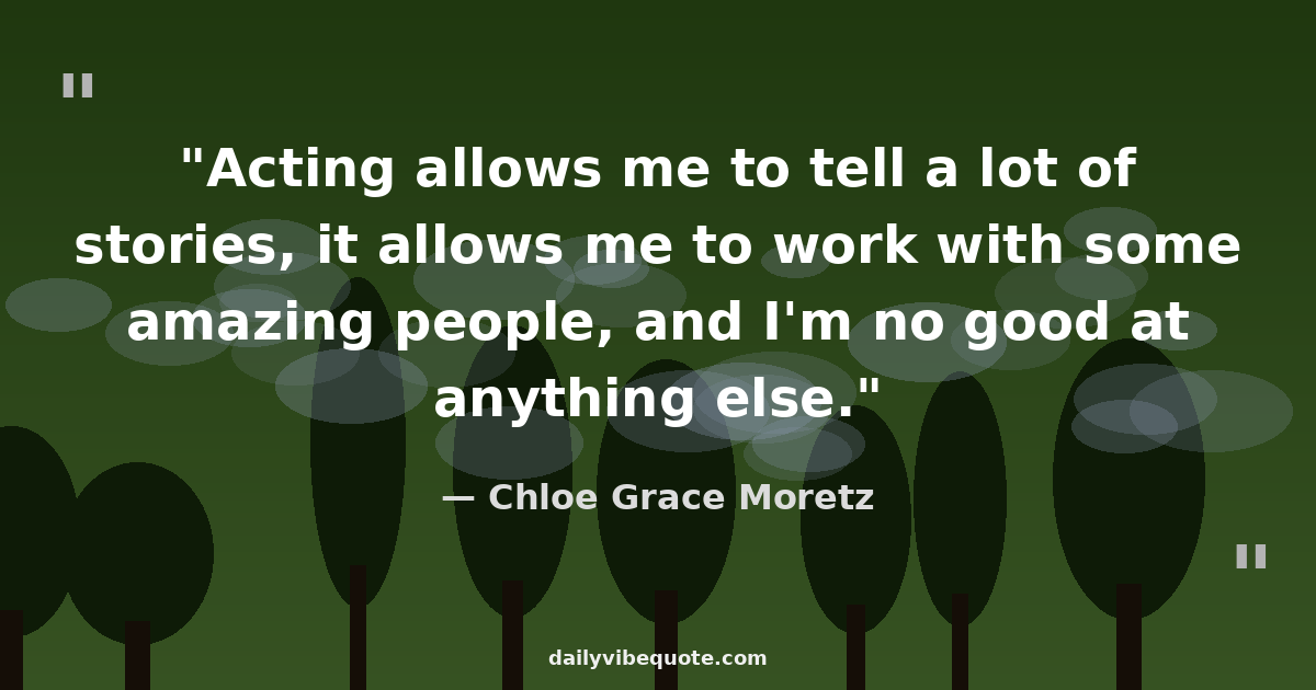 "Acting allows me to tell a lot of stories, it allows me to work with some amazing people, and I'm no good at anything else."