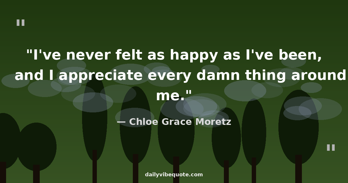 "I've never felt as happy as I've been, and I appreciate every damn thing around me."