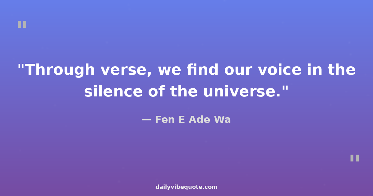 Fen E Ade Wa was a renowned poet and writer known for her unique style that blended traditional themes with modern perspectives. Born in a small village, she discovered her passion for literature at a young age and went on to publish several critically acclaimed collections of poetry. Her works often touched on themes of love, nature, and social issues, resonating with audiences worldwide. Fen E Ade Wa's lyrical expressions and profound insights continue to inspire generations of readers.