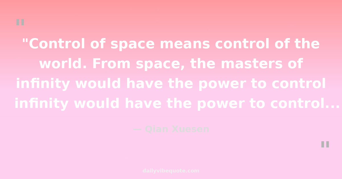 "Control of space means control of the world. From space, the masters of infinity would have the power to control the Earth's weather, to cause drought and flood, to change the tides and raise the levels of the sea, to divert the Gulf Stream and change temperate climates to frigid."