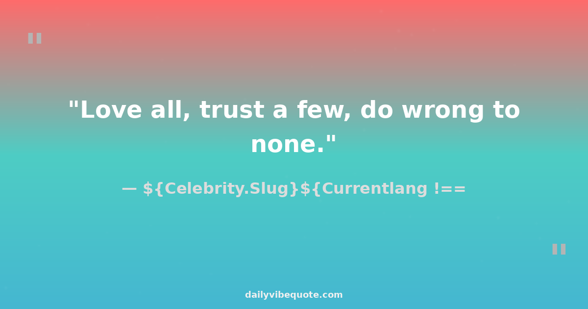 "Love all, trust a few, do wrong to none."