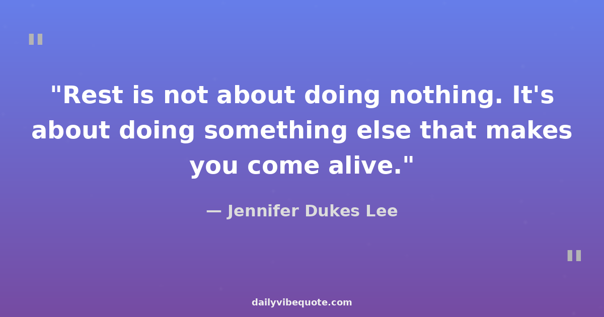 "Rest is not about doing nothing. It's about doing something else that makes you come alive."