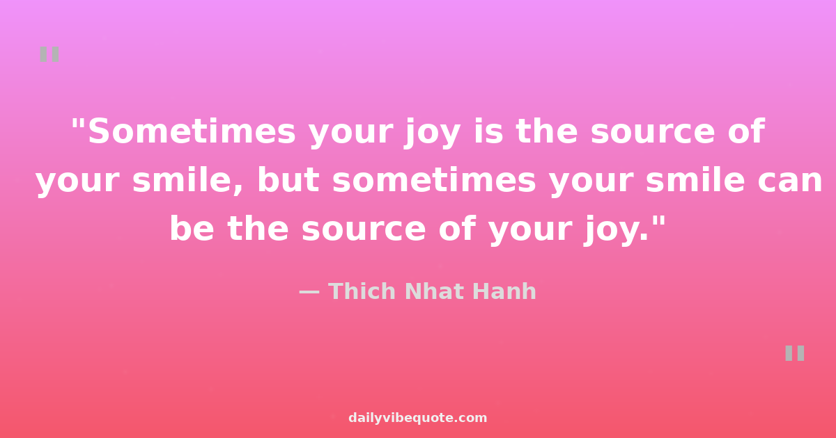 "Sometimes your joy is the source of your smile, but sometimes your smile can be the source of your joy."