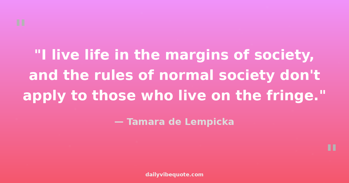 "I live life in the margins of society, and the rules of normal society don't apply to those who live on the fringe."