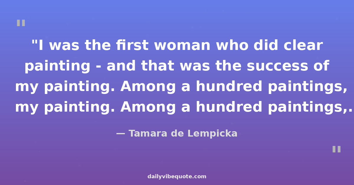 "I was the first woman who did clear painting - and that was the success of my painting. Among a hundred paintings, you could recognize mine. And the galleries began to put me in the best rooms, always in the center, because my painting attracted people."