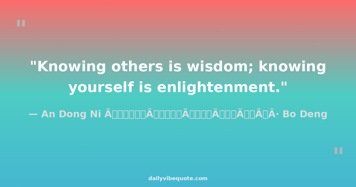 "Knowing others is wisdom; knowing yourself is enlightenment."