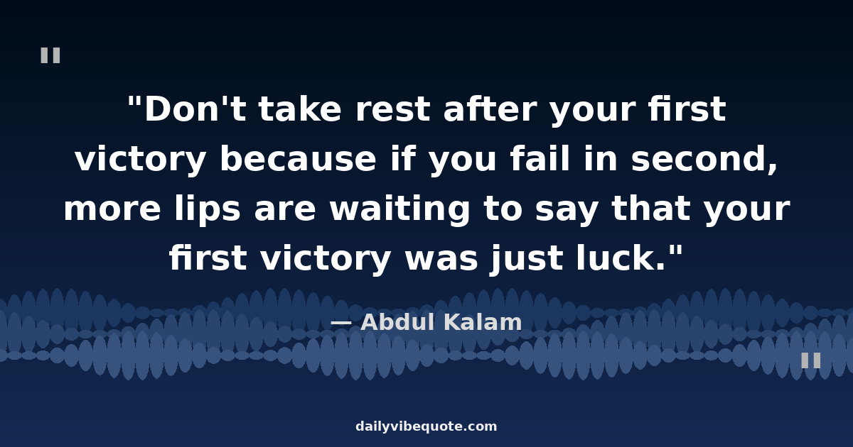 "Don't take rest after your first victory because if you fail in second, more lips are waiting to say that your first victory was just luck."
