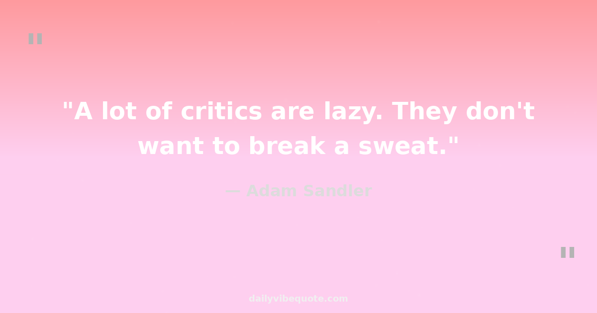 "A lot of critics are lazy. They don't want to break a sweat."
