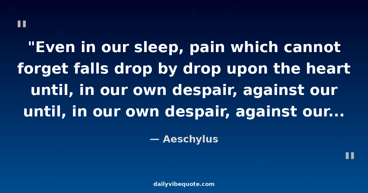 "Even in our sleep, pain which cannot forget falls drop by drop upon the heart until, in our own despair, against our will, comes wisdom through the awful grace of God."
