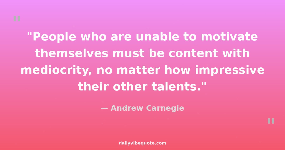"People who are unable to motivate themselves must be content with mediocrity, no matter how impressive their other talents."