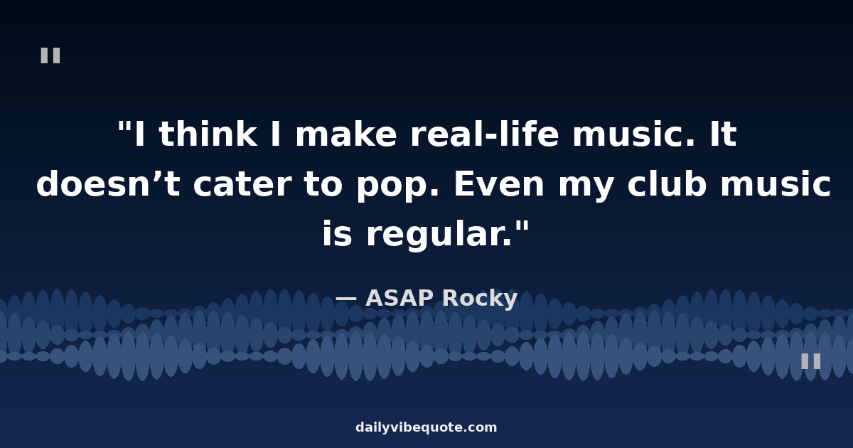 "I think I make real-life music. It doesn’t cater to pop. Even my club music is regular."