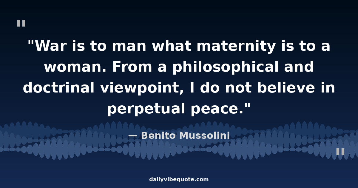 "War is to man what maternity is to a woman. From a philosophical and doctrinal viewpoint, I do not believe in perpetual peace."
