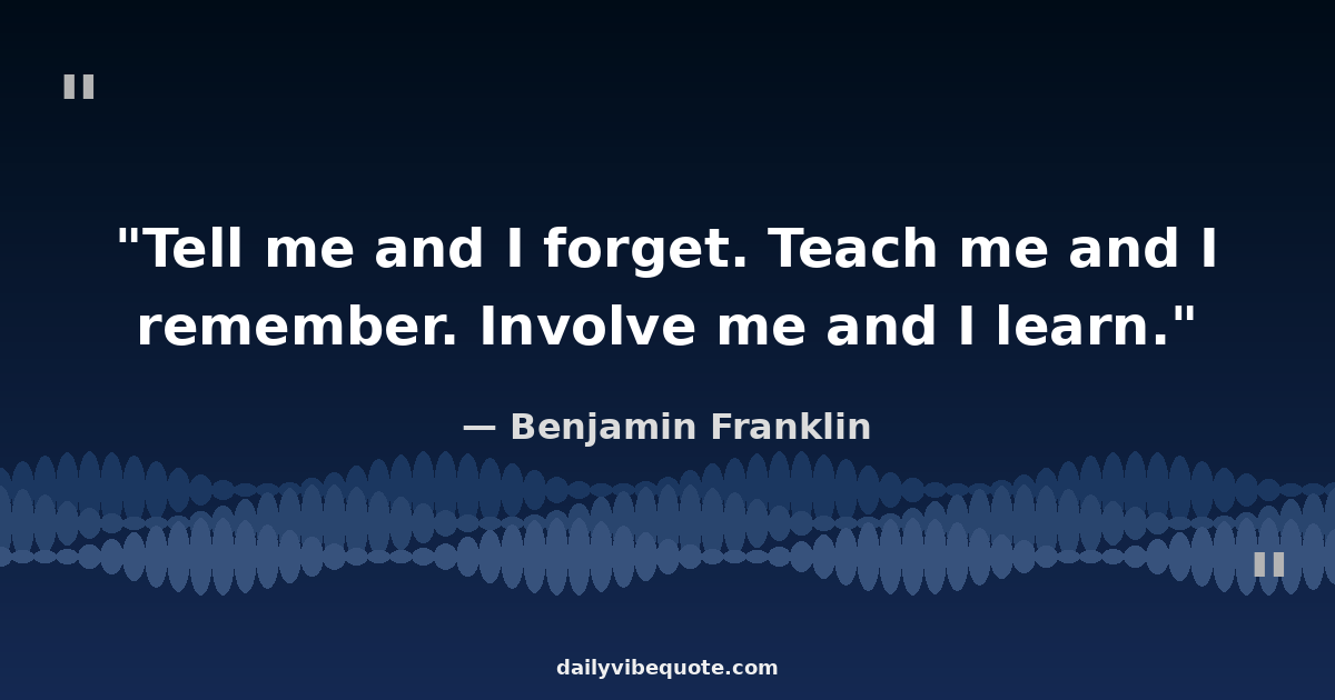 "Tell me and I forget. Teach me and I remember. Involve me and I learn."