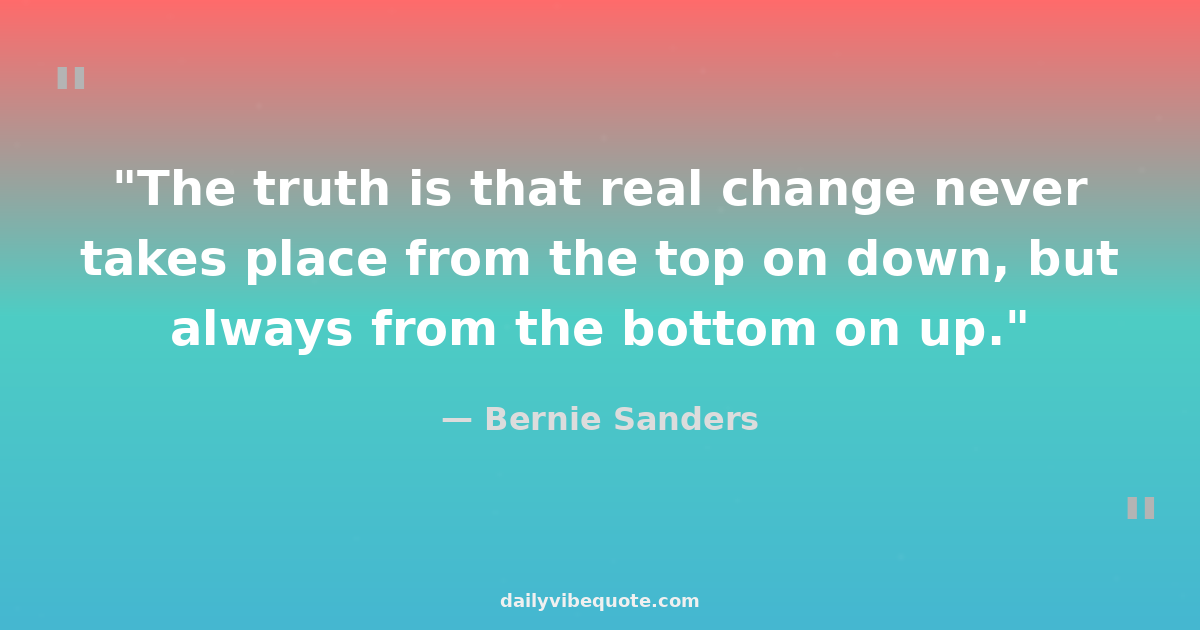 "The truth is that real change never takes place from the top on down, but always from the bottom on up."