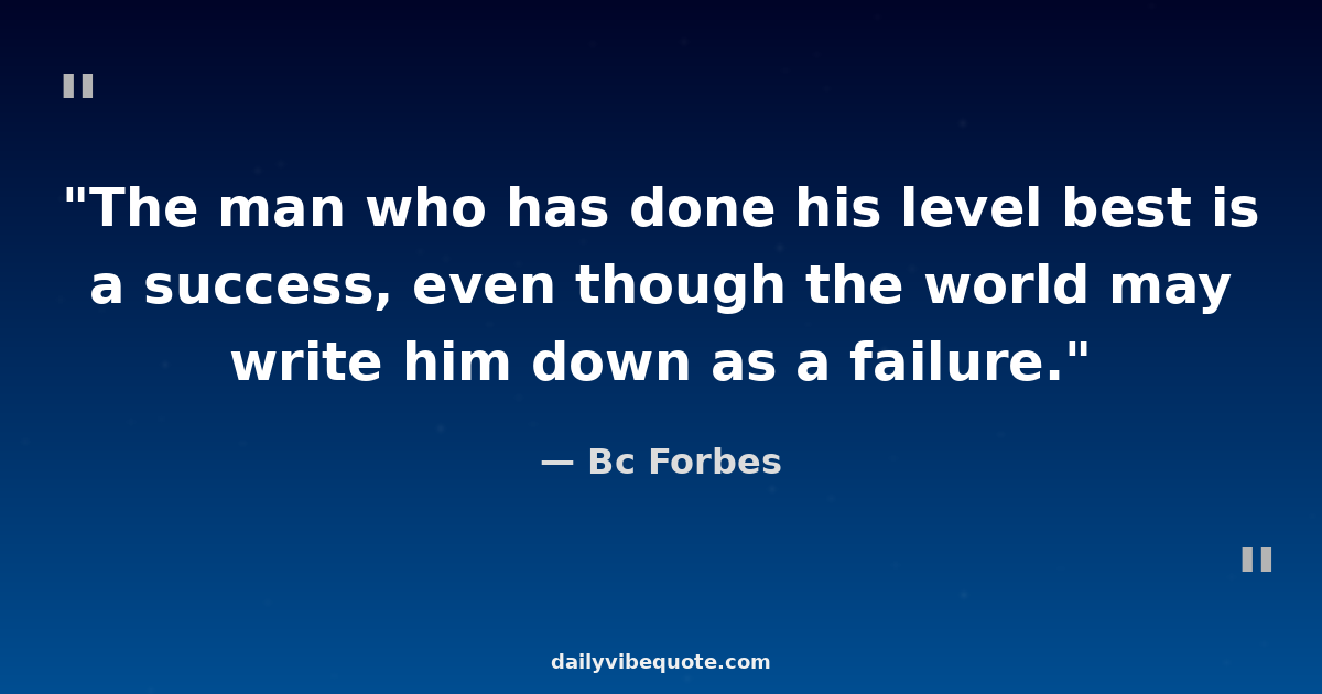 "The man who has done his level best is a success, even though the world may write him down as a failure."
