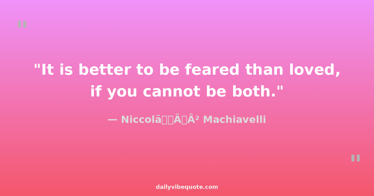 "It is better to be feared than loved, if you cannot be both."