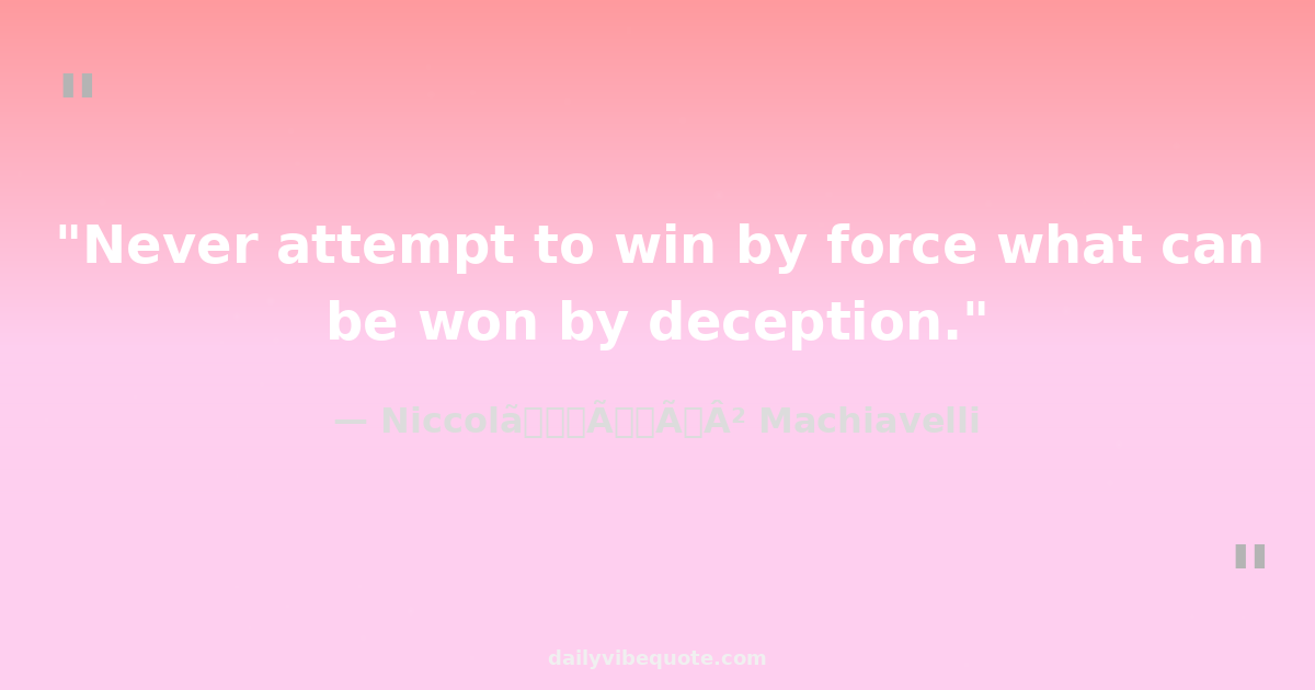 "Never attempt to win by force what can be won by deception."