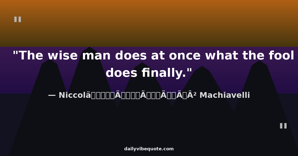 "The wise man does at once what the fool does finally."