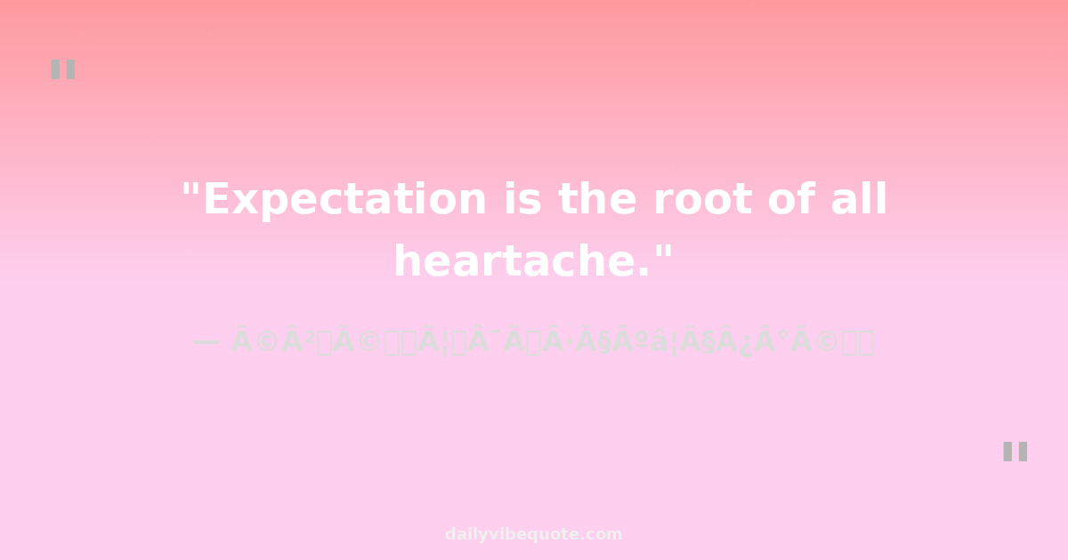"Expectation is the root of all heartache."