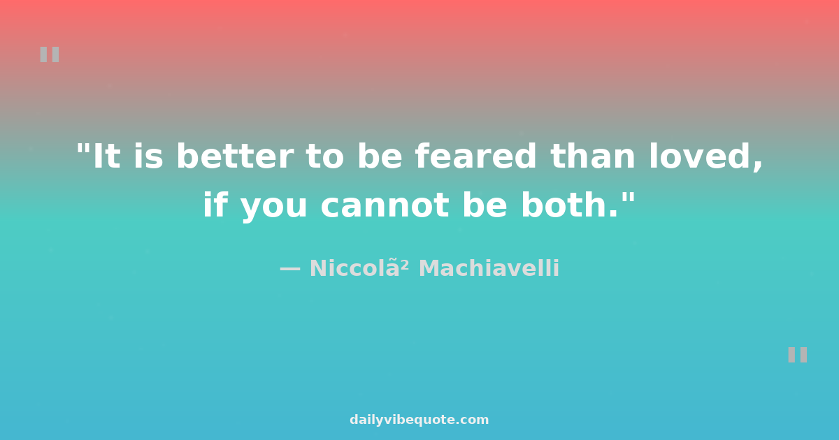 "It is better to be feared than loved, if you cannot be both."