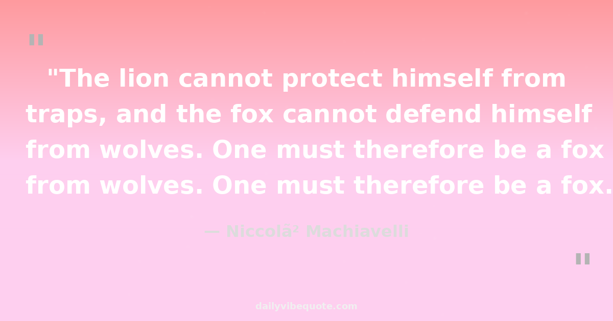"The lion cannot protect himself from traps, and the fox cannot defend himself from wolves. One must therefore be a fox to recognize traps, and a lion to frighten wolves."