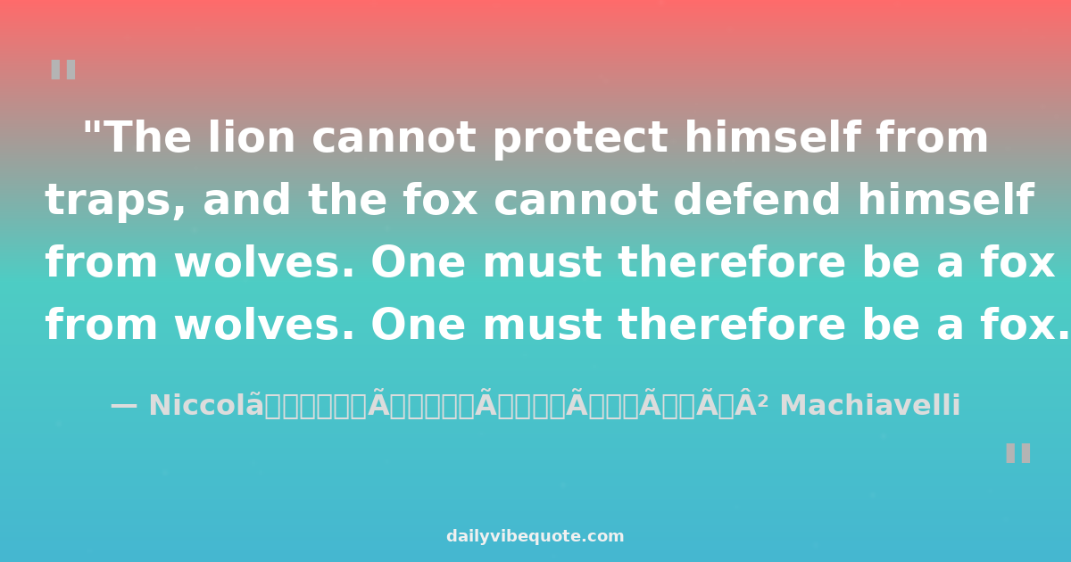 "The lion cannot protect himself from traps, and the fox cannot defend himself from wolves. One must therefore be a fox to recognize traps, and a lion to frighten wolves."