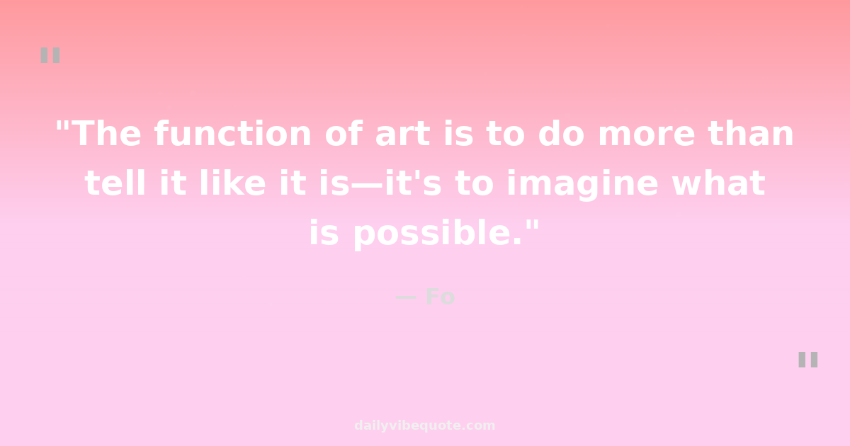"The function of art is to do more than tell it like it is—it's to imagine what is possible."