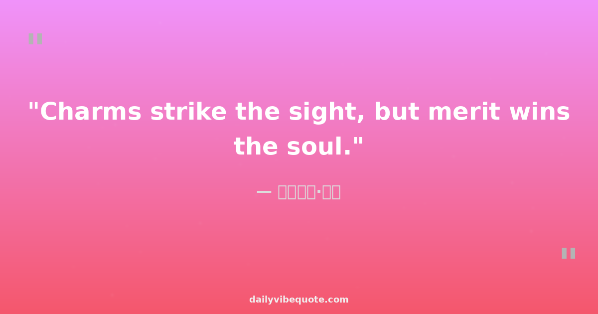 "Charms strike the sight, but merit wins the soul."
