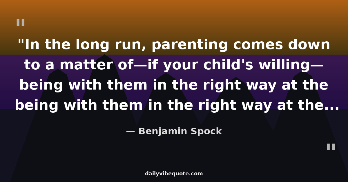 "In the long run, parenting comes down to a matter of—if your child's willing— being with them in the right way at the times when they're growing, and making sure you make the most of the opportunities as they arrive."