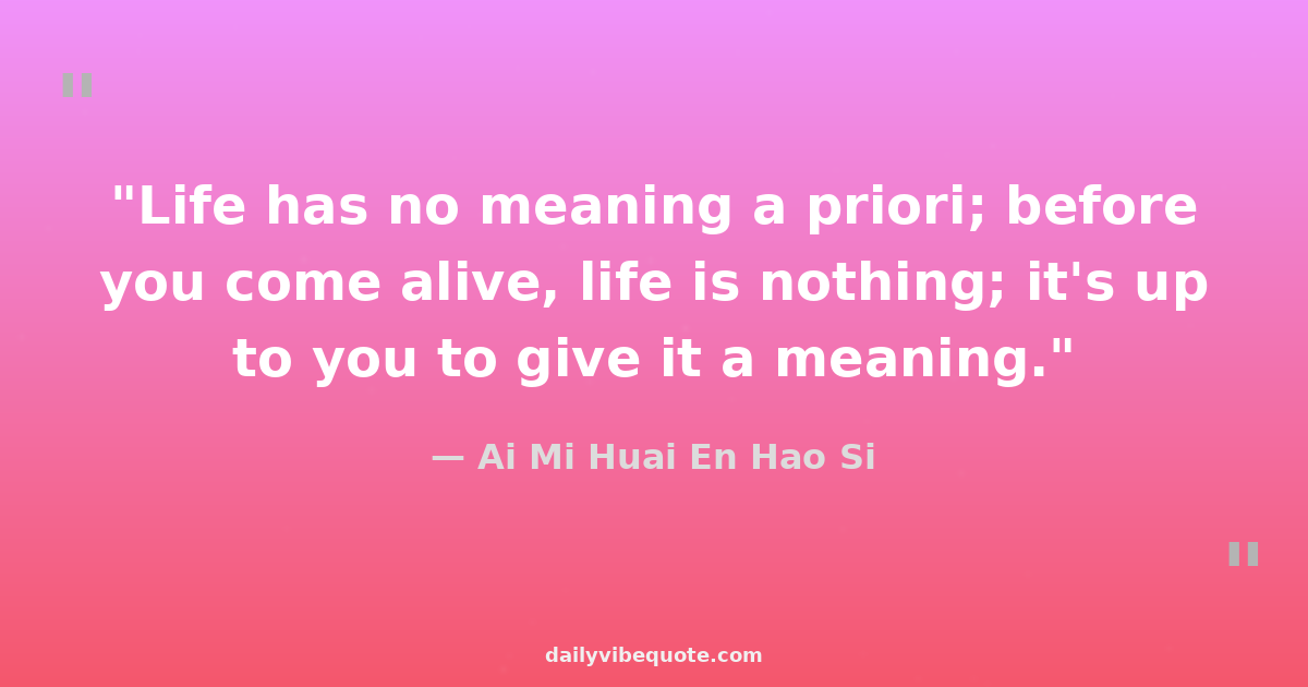 "Life has no meaning a priori; before you come alive, life is nothing; it's up to you to give it a meaning."