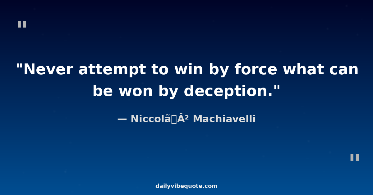 "Never attempt to win by force what can be won by deception."