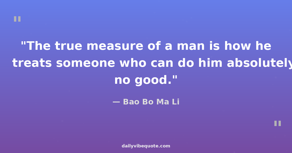 "The true measure of a man is how he treats someone who can do him absolutely no good."