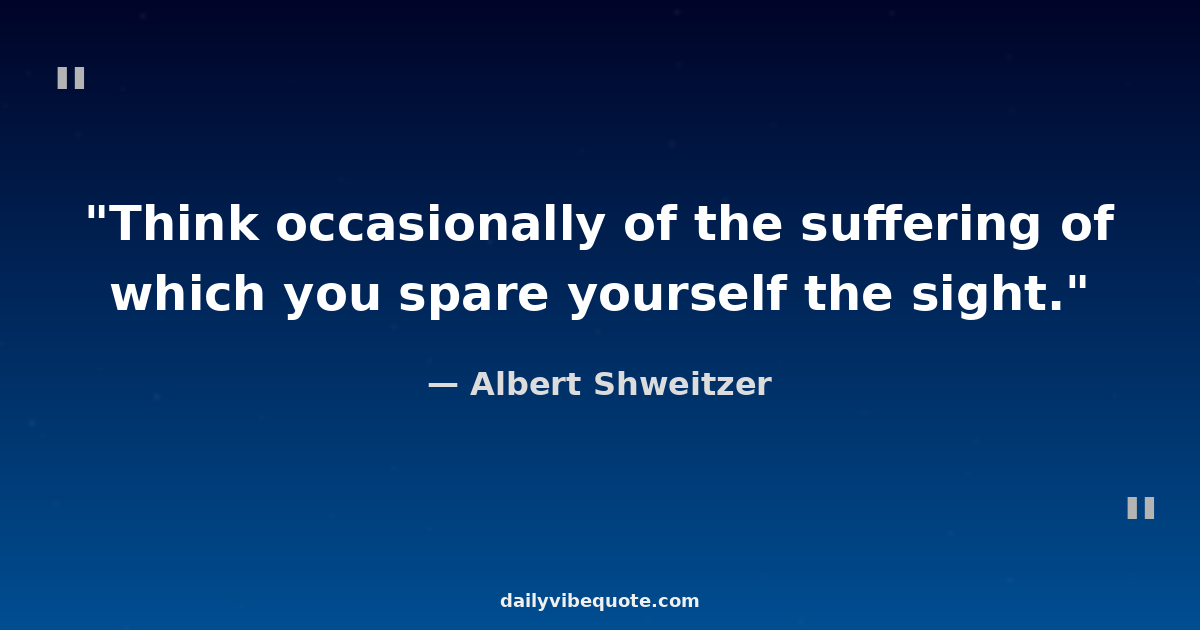 "Think occasionally of the suffering of which you spare yourself the sight."