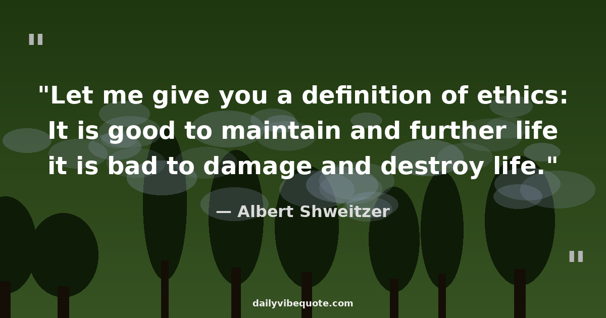 "Let me give you a definition of ethics: It is good to maintain and further life it is bad to damage and destroy life."