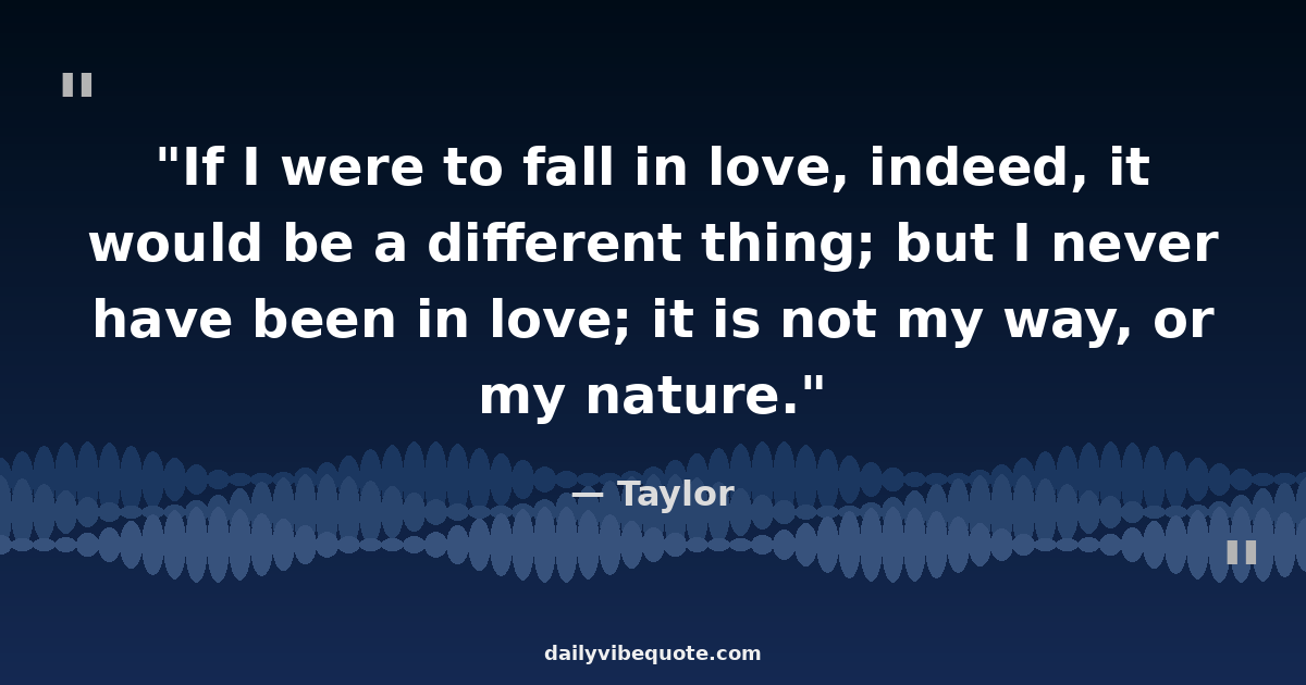 "If I were to fall in love, indeed, it would be a different thing; but I never have been in love; it is not my way, or my nature."
