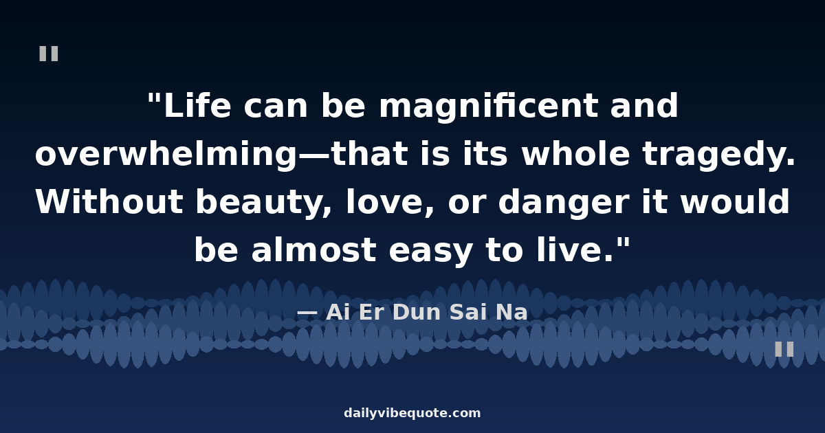 "Life can be magnificent and overwhelming—that is its whole tragedy. Without beauty, love, or danger it would be almost easy to live."