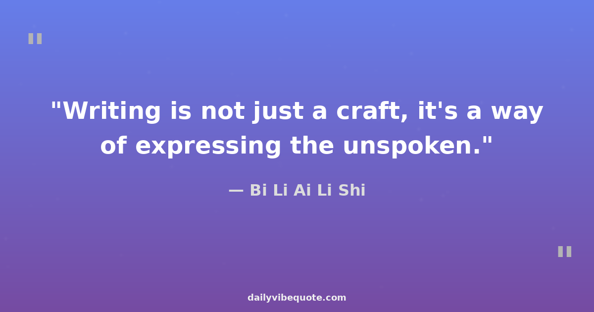 "Writing is not just a craft, it's a way of expressing the unspoken."