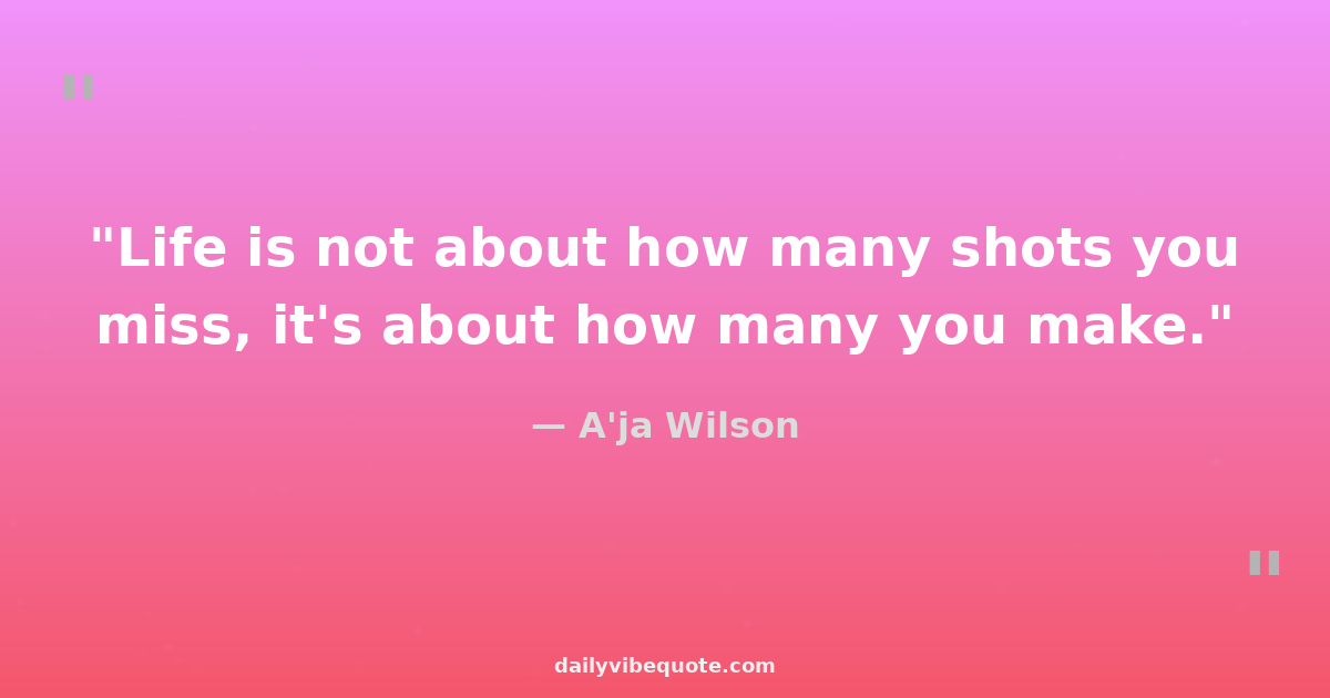 "Life is not about how many shots you miss, it's about how many you make."