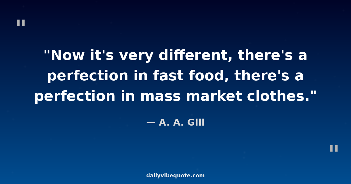 "Now it's very different, there's a perfection in fast food, there's a perfection in mass market clothes."