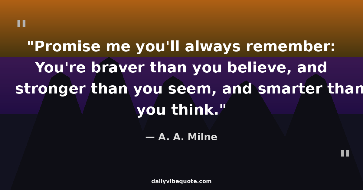"Promise me you'll always remember: You're braver than you believe, and stronger than you seem, and smarter than you think."