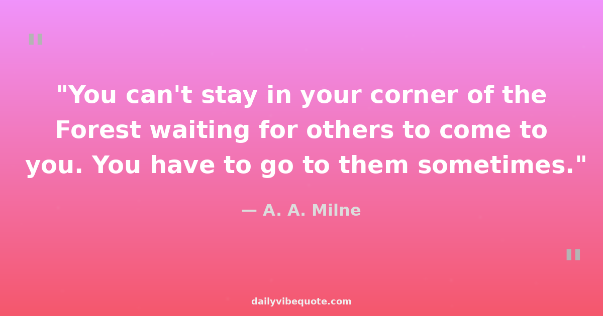 "You can't stay in your corner of the Forest waiting for others to come to you. You have to go to them sometimes."