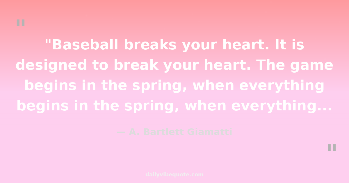 "Baseball breaks your heart. It is designed to break your heart. The game begins in the spring, when everything else begins again, and it blossoms in the summer, filling the afternoons and evenings, and then as soon as the chill rains come, it stops and leaves you to face the fall alone."